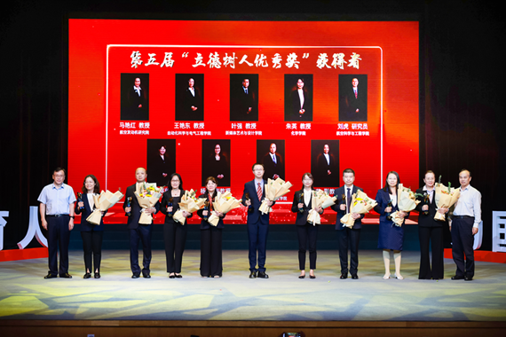 校党委副书记、纪委书记何新洲,副校长陶智为“立德树人优秀奖”获奖教师颁奖