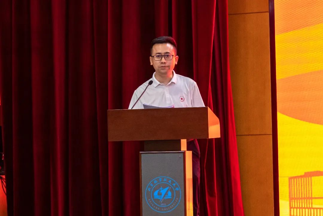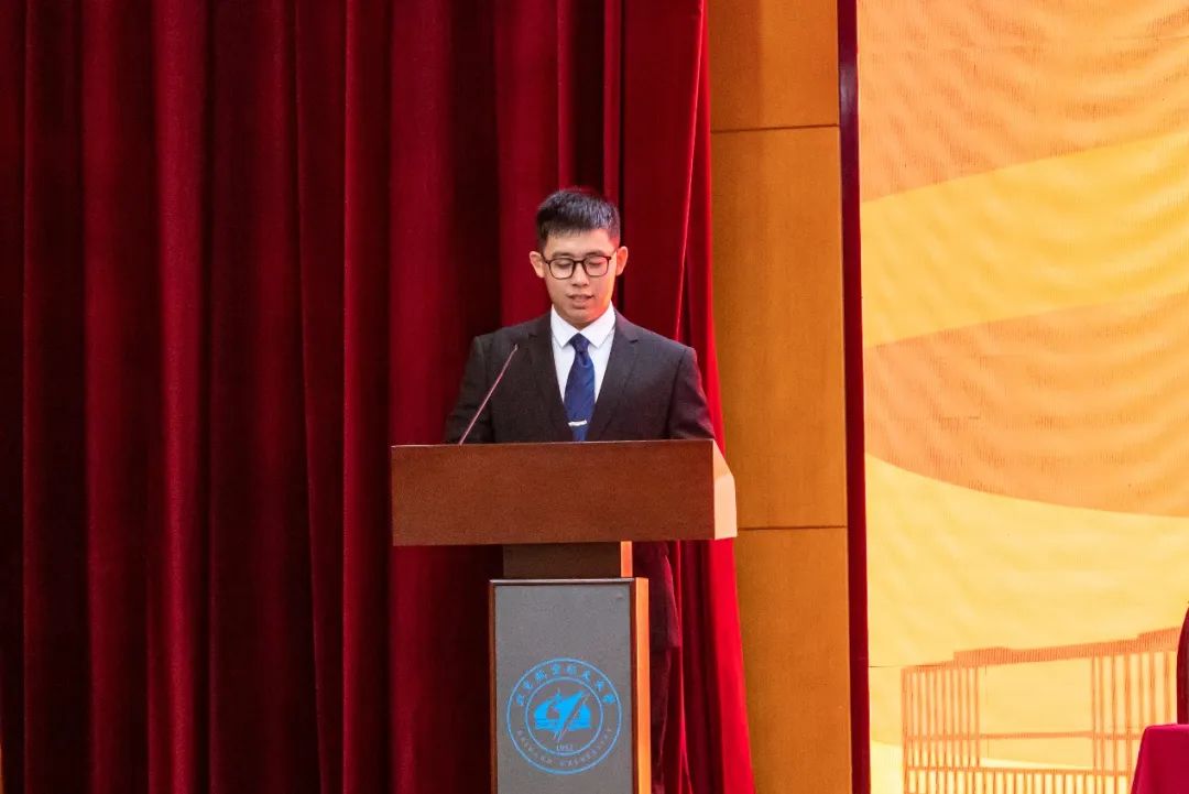 在校博士生代表刘易哲追忆了北航的70年历史岁月,结合自己的7年求学历程,与北航新生分享了几点建议:首先,心怀理想、勇于实践,珍惜学校浓厚的学术氛围与平台机会;第二,脚踏实地,培养恒心和毅力,面对挫折与失败,应该行而不辍、坚持前行。第三,面对更加复杂的国际局势和更加激烈的航空航天竞争,北航学子作为新一代航空航天接班人,应将自己的学习与科研和祖国的需求相结合,成为国家航空航天事业的栋梁。
