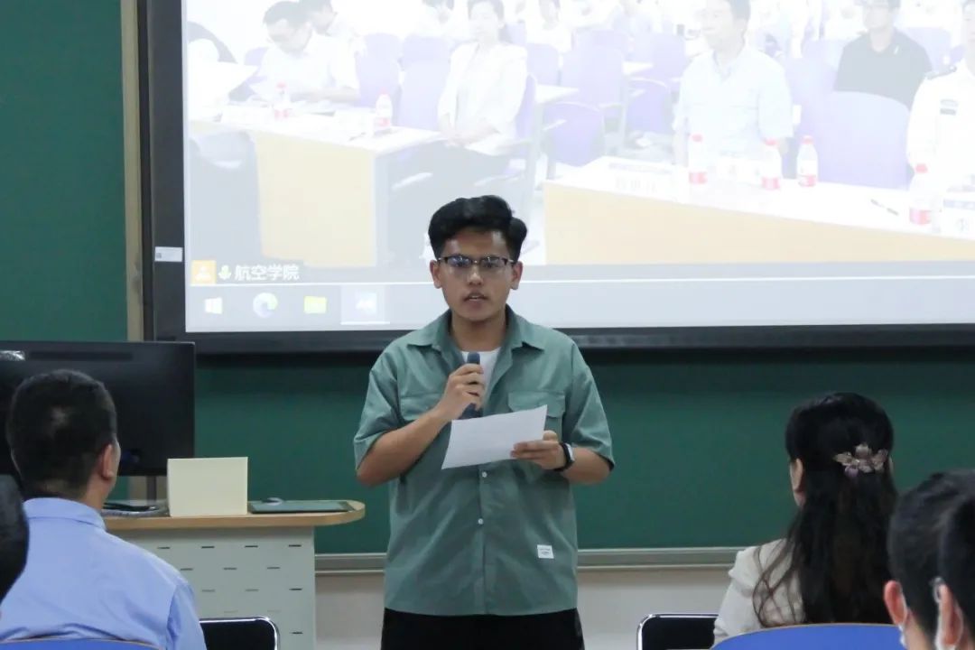 19级陆士嘉班学长张恒德、李博程和20级双学籍飞行学员班学生代表于浩、戴鸣柯向大家分享了自己在北航的学习生活经历,他们表示,国产做爱视频
