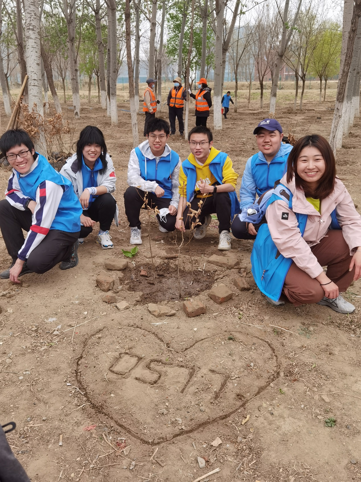 (图为集体合作种植树苗的合影)