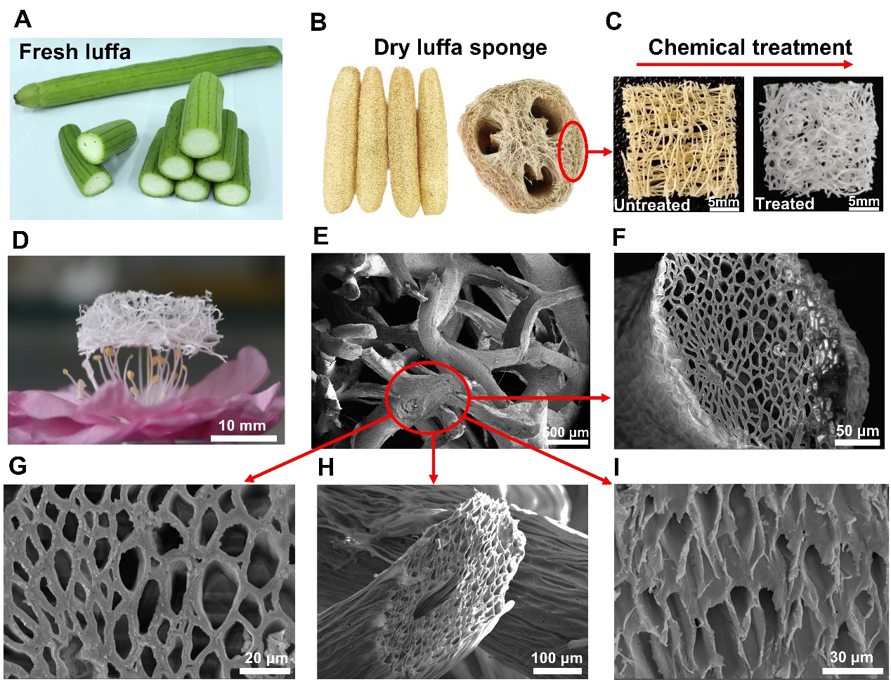 图2.丝瓜络的形貌和结构特征