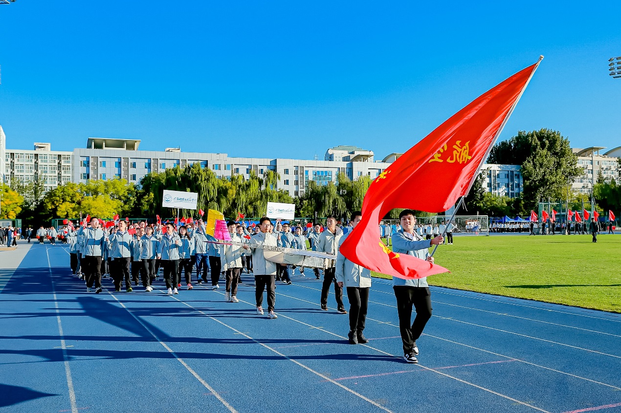 师生方阵在党委书记鲍蕊、工会主席高振勋的带领下,身着统一服装,热情挥舞着手中的红旗,踏着铿锵有力的步伐,昂首挺胸的姿态与“凌云争锋、创智空天、科教协同、航向未来”的口号展现出国产做爱视频