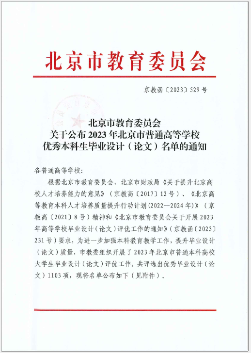 本科校级优秀毕业设计(论文)和北京市普通高等学校优秀本科生毕业设计(论文)(团队类)。