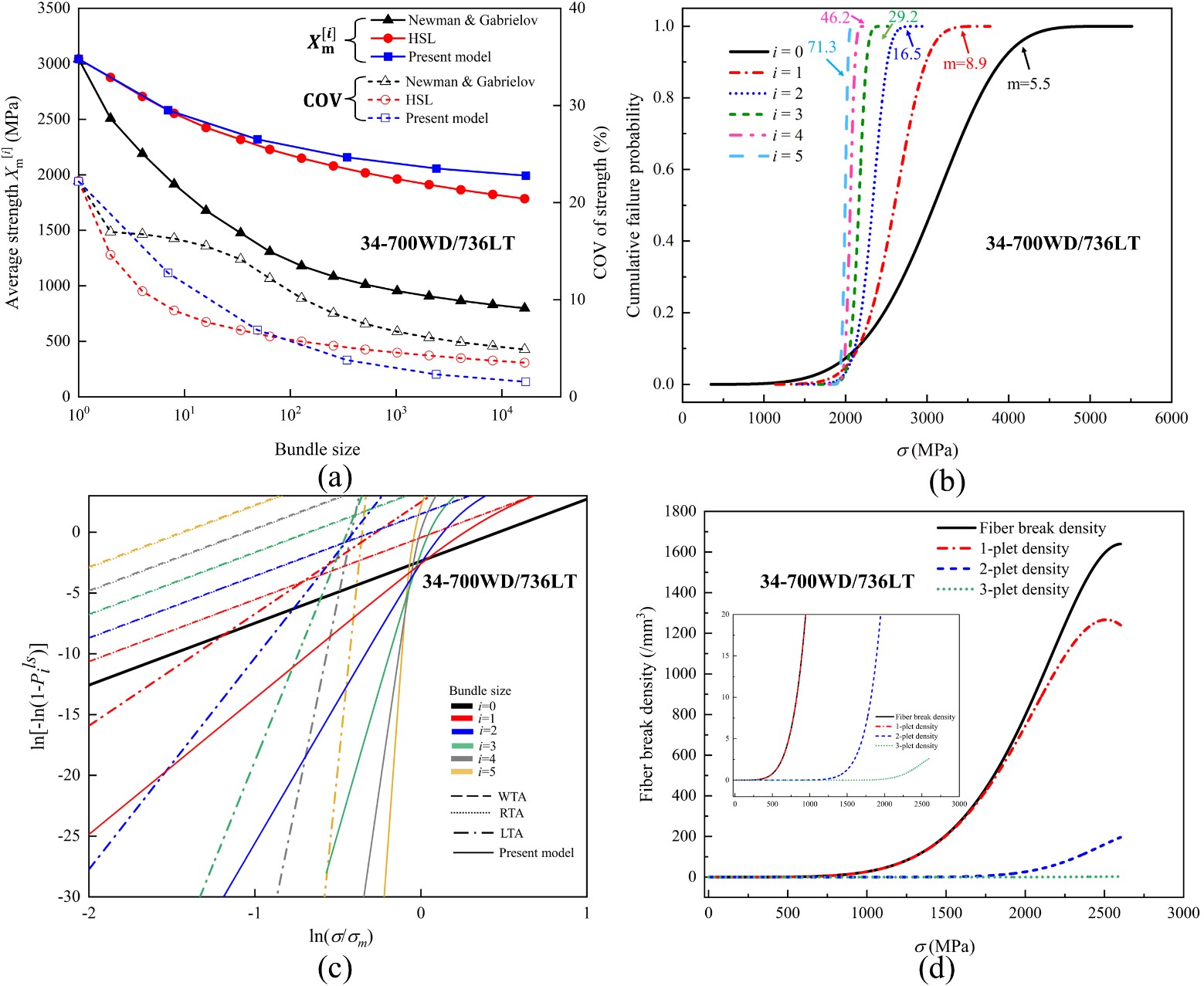 纵向拉伸破坏是纤维增强复合材料最关键的失效模式,然而基于现有的强度理论精确预测复合材料的失效强度和损伤演化仍然面临较大挑战。一方面,现有主流复合材料强度准则多采用纤维的确定性强度(比如平均强度)作为失效判断的重要参量,而忽视了纤维强度分散性以及纤维/基体界面剪切强度的影响;另一方面,纤维束中局部纤维的失效会显著影响邻域内纤维上的载荷分布,从而导致纤维束内部损伤扩展,最终导致纤维束失效,并表现为典型的多尺度损伤,这些物理现象在诸多宏观强度准则中都缺乏刻画。