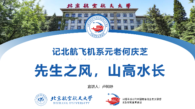 在《核心技术自立自强 航空强国奋勇攀登》团课中,卢帅婷概述了航空工业自1951年以来的发展历程。她强调了航空工业在国家现代化中的先锋角色,展示了航空人的自强不息和奋斗精神。在《先生之风,山高水长——记北航飞机系元老何庆芝》团课中,卢帅婷深入讲述了何庆芝教授投身于航空学科建设,始终秉持严谨求实的理念,全心奉献于教育事业,深受学生敬爱的故事。卢帅婷强调,新时代青年应继承何教授的精神,奋力为国家的航空工业和民族复兴贡献力量。
