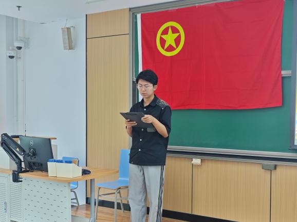 分团委在沙河校区4号教学楼101举行入团仪式。辅导员刘丽娜、优秀团员代表以及2024年春季学期新发展团员参加本次活动。本次入团仪式由220516支部团支书王子豪主持。