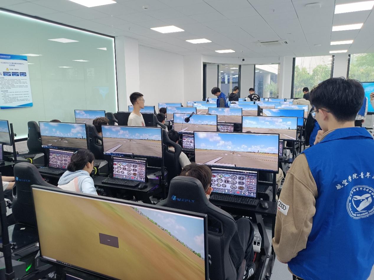 依托新一代全数字化飞行器科教协同创新平台,组织了模拟飞行活动,让同学们通过专业的仿真设备操控飞机,体会飞行的魅力。活动中,同学们学习了飞机飞行的基本原理和操纵方法,练习并完成了基本的飞行任务。此外,同学们还展开了4V4虚拟仿真对抗赛,进一步感受航空的魅力、激发学习航空专业的热情。