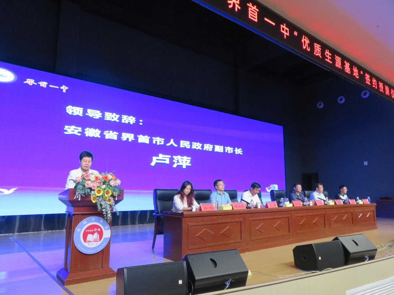 卢萍副市长对北航杨超教授一行师生的到来表示热烈的欢迎,指出北航授予界首一中“优质生源基地”这一荣誉的意义。她希望界首一中以本次授牌为新的起点,为北航等知名高校输送更多优质生源,为中国式现代化建设培养更多、更好的优秀人才。同时,卢萍副市长还通过生动的案例和数据,强调了科技创新对于国家发展的重要性,鼓励同学们要树立正确的价值观和人生观,努力学习科学文化知识,为实现中华民族伟大复兴的中国梦贡献自己的力量。