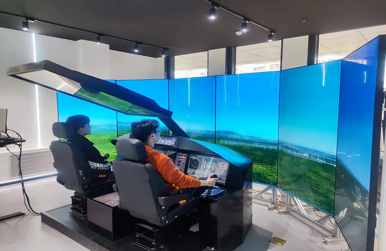 学生在新一代全数字化飞行器设计科教协同创新中心模拟操作自主设计的全数字飞机