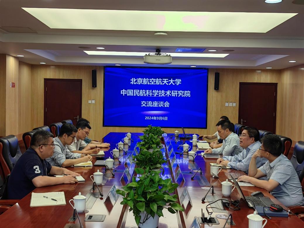 潘翀院长、副院长周尧明,流体所所长屈秋林,实验教学中心主任李可和博士后程泽鹏等人赴中国民航科学技术研究院(简称航科院)开展调研和交流。航科院李敬总工程师,安全所舒平所长,机场所卢贤锋副所长,研发中心高原技术研究室杨乐主任,科技处余正宁高工,机场所刘佳工程师及航科公司信息技术部刘斯茗主管等领导接待了北航一行。