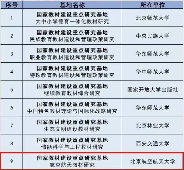 基地建设以习近平新时代中国特色社会主义思想为指导,落实立德树人根本任务,持续开展专业化教材研究、为航空航天教材建设提供咨询指导、交流推广优秀教材研究成果、打造教材研究队伍、培养教材建设专业人才。航空航天专业教材建设重点研究基地面向航空航天新时代高质量人才培养,立足国家重大需求,是集本领域优势高校、行业领军企业和权威出版机构等为一体的航空航天领域教材研究与建设平台。基地自2017年以来,主编出版了151本航空航天类教材,其中38本被评为国家或省部级精品规划、精品或立项教材,形成了较为完整的航空航天类教材体系。曾获批首届全国教材建设奖“全国教材建设先进集体”和工业和信息化部“十四五”规划教材重点研究基地,航空航天类教材编写有传承,新形态教材建设有经验,英文教材建设成效显著有成果。基地将充分发挥引领示范作用,为航空航天类专业教材建设、管理和政策制定提供理论支持和智力支撑。