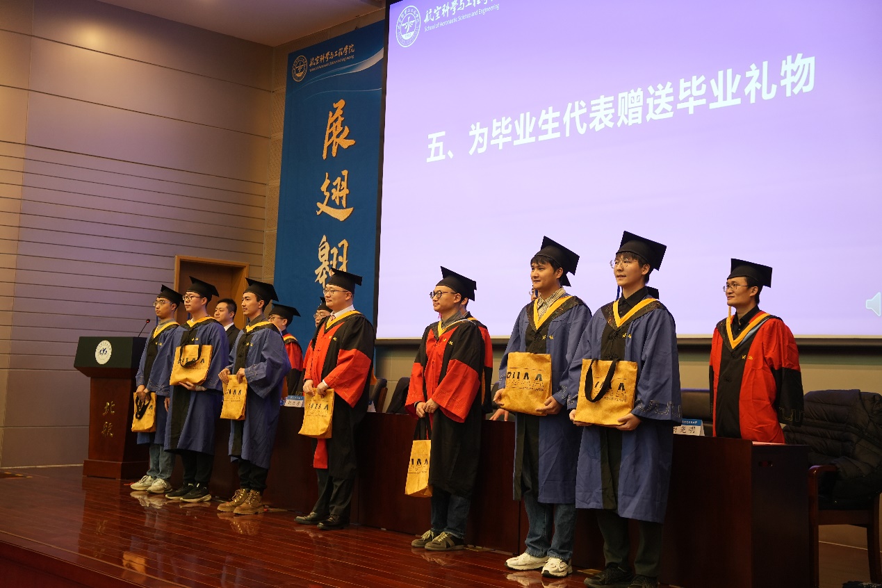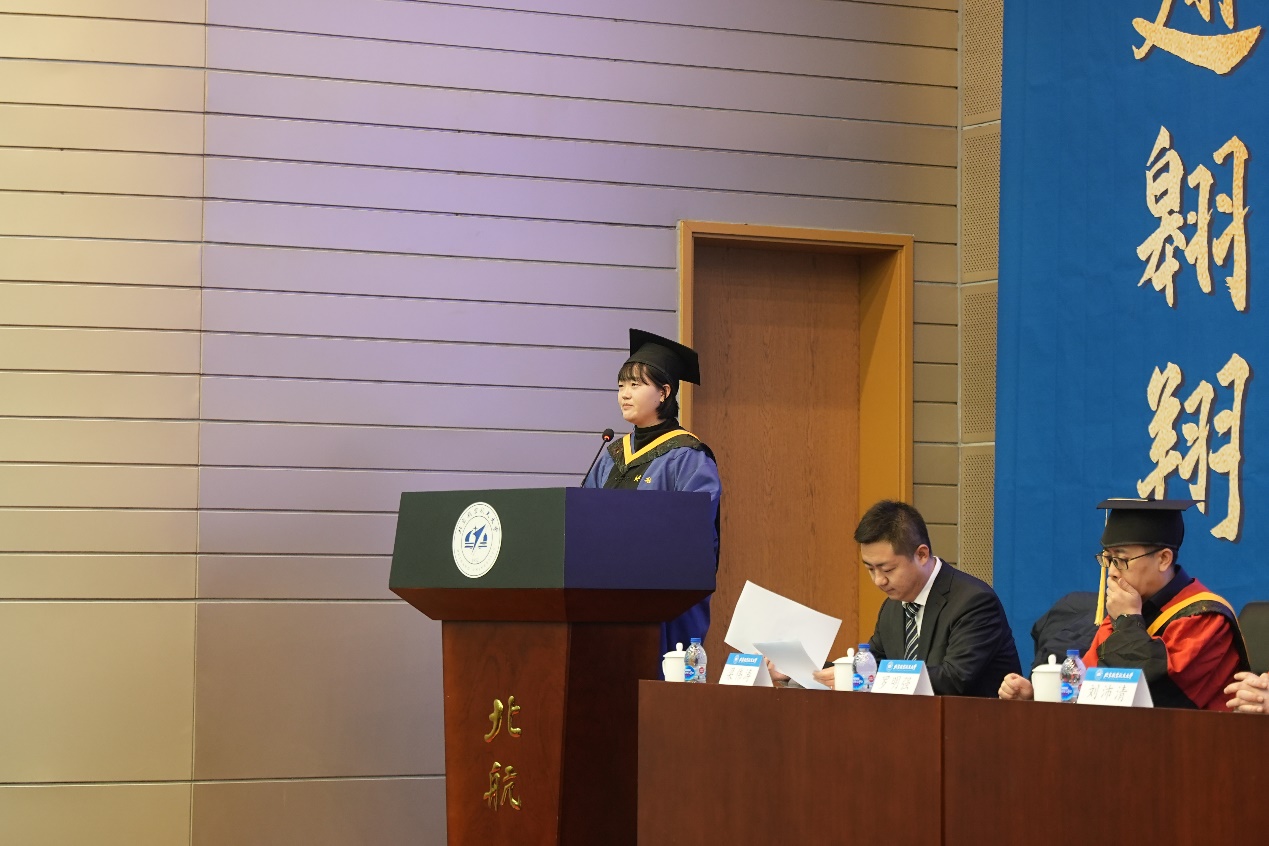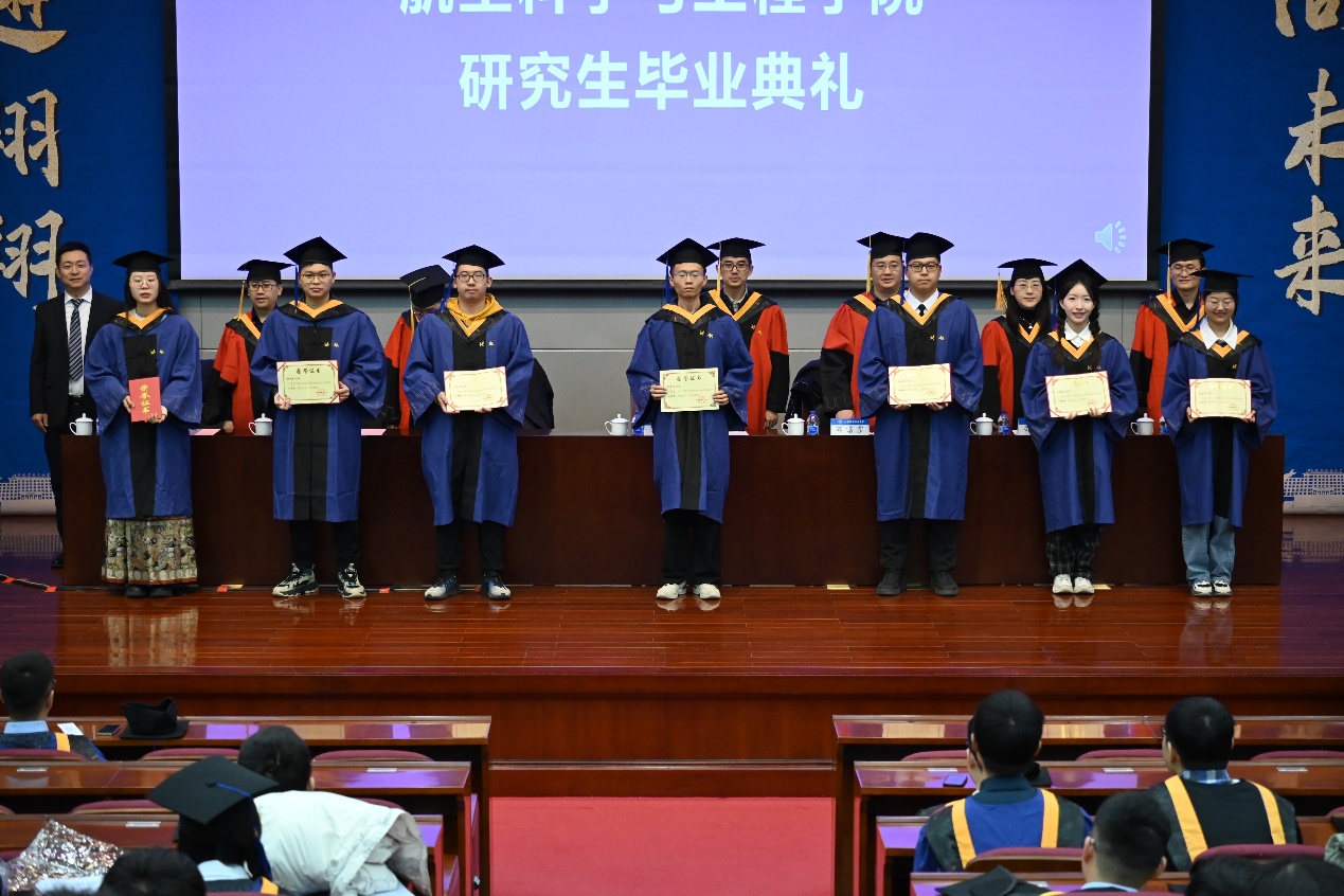 学院党委书记董雷霆宣读了本批次荣获北京市优秀毕业生和北航优秀毕业生的学生名单,邵浩原、刘英歌等9名研究生获评“北京市优秀毕业生”,王晓敏、李一丁等41人获评“北航优秀毕业生”。主席台领导为优秀毕业生代表颁发证书。