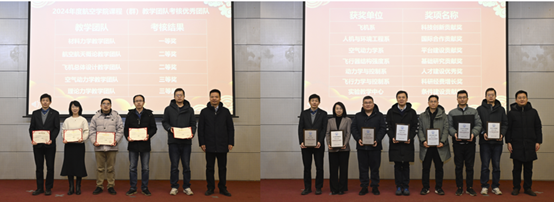 优秀课程教学团队代表颁发证书,激励广大教师在教育教学工作中积极进取、追求卓越。学院党委书记董雷霆教授为飞机系、人机与环境工程系、空气动力学系、飞行器结构强度系、动力学与控制系、飞行力学与控制系、实验教学中心7个基层组织颁奖。台下掌声雷动,这是对过去一年工作的肯定,更是对未来发展的热切期盼。