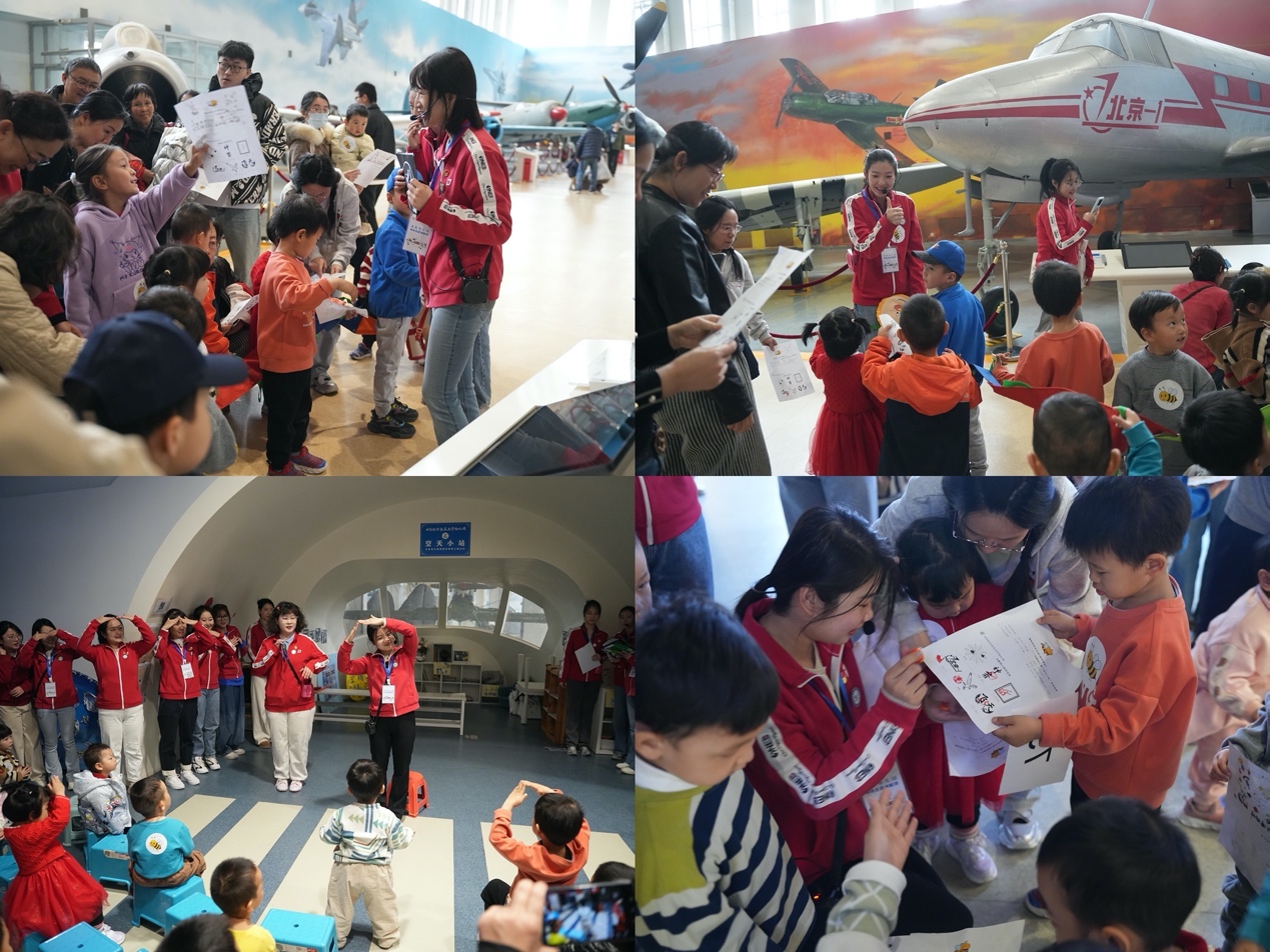 在开幕式后,由志愿者为学院教职工子女在博物馆内进行寻宝打卡、静电小实验、镜面反射体验等活动,将晦涩难懂的空天知识转化为幼儿可理解、操作的小游戏,激发幼儿对空天科学探索的热情。