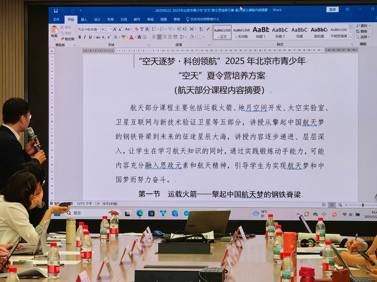 张家应教授带领的团队分别对“航空航天”主题夏令营的课程大纲和详细内容进行了展示。最后,北京八十中市级基地校分享了他们在相关课程方面的实践经验。