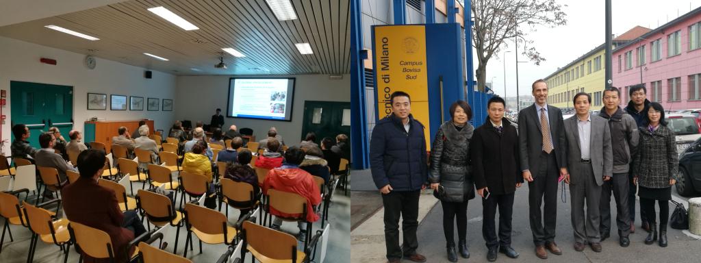 在米兰理工大学,代表团在Department of Aerospace Science & Technology,与系主任Franco Bernelli教授及该系相关负责人、教授等举行座谈。双方介绍了各自院系的基本情况,对进一步推动两校双博士项目等合作达成了共识。代表团成员分组与该系教授们举行了科学研究和人才培养的合作研讨,决定进一步梳理双方共同感兴趣的科研方向,完成教授科研合作上的对接,以此为基础深入推进双博士项目。在Department of Energy,与系主任Fabio Inzoli教授及该系的相关负责人举行了座谈,双方介绍了各自院系的基本情况,探讨了学生互换、教师科研合作等事宜。文院长为米兰理工大学师生作了题为“Aerospace Engineering in China: Challenges & Opportunities”的报告,吸引了该校师生和华人青年学者的广泛参与,并对师生们对来我校工作提出的相关问题进行详细解答。