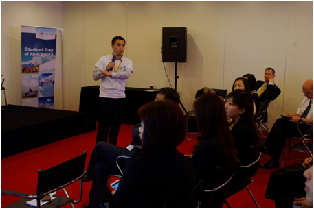 结构刚度设计研究室“梦想一号”公务机设计团队的严贤怀、马骏、王亚龙同学受邀参加了2014亚洲商务航空会议及展览会(ABACE)的“学生日”活动,并在活动上进行了展示、汇报和交流。