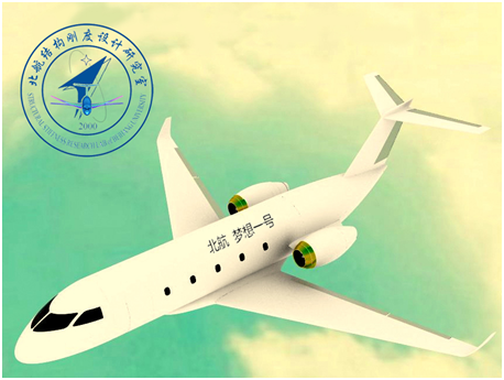 “梦想一号”公务机是由何景武教授指导、由研究生和本科生共同设计一款中型公务机。该机全长16米,翼展14.86米,最大起飞重量6.96吨,巡航速度0.8马赫,由两台普惠公司的PW545A发动机提供动力,航程5200千米,标准配置为3名机组成员和8名乘客。