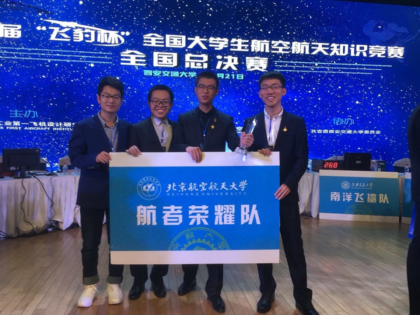 2017级研究生周轩、高等理工学院2015级本科生张晓岳、2016级本科生王一霖组成的“航者荣耀”队奋起直追,发挥出色,极快的缩小分差,保留了追逐冠军的希望。当最后篇章华山论剑到来时,比赛也来到了高潮。面对答对加分、答错扣分的综合问答环节,我校“航者荣耀“队精准作答,展现了非凡的实力,张晓岳同学更是依靠其丰富的知识储备和准确详尽的表述,边答题边为观众科普,赢得了评委和观众的一致认可,现场惊叹不断。最终,主办方西安交大代表队凭借强大的实力和稳定的发挥摘得桂冠,我校“航者荣耀”队夺得一等奖。