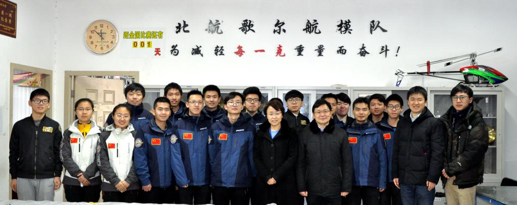 学生创新实践的重要基地。北航航模队是北航一张闪亮的名片,充分体现了北航学生团结协作、勇于创新、敢于拼搏的精神。航模队汇报了备战美国航空航天模型锦标赛的情况,曹书记详细询问了航模队的情况,对北航航模队这一创新人才培养模式给予了高度赞扬,对航模队员提出了殷切希望,勉励他们立志空天报国、敢为人先,并与航模队全体队员合影留念。在参观流体力学教育部重点实验室过程中,曹书记认真了解每座风洞的特点和我院教师的科研情况。在热强度实验室,吴大方教授给曹书记汇报了自己的工作并进行现场演示,曹书记对吴大方教授世界一流的研究成果给予了高度的评价,对吴教授为航空航天事业做出的贡献表示感谢,她说吴教授对航空航天事业的情怀、对北航的情怀让人感动,希望吴老师一定要保重身体,学校也会全力支持热强度实验室的建设,让我们一起为国家的航空航天事业做出更大的贡献。