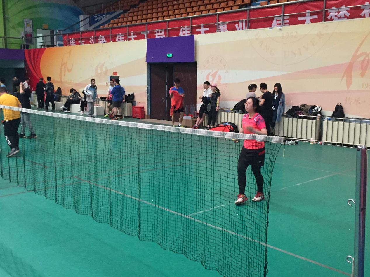 赛场上参赛选手热情高涨,在场上发球接球动作一气呵成,迅速敏捷,挥洒自如。羽毛球运动的美丽感染全场,赢得了场外观众的阵阵喝彩。我院参赛选手沉着冷静、积极应对,在学生组和师生组的比赛中都展现了不俗的实力。赛程首日我院取得了骄人的成绩:学生组:女单季军(张若昀),女双冠军(贾娇李彦苏),男双第四(孔岳侯路远);师生组:混双亚军(徐伟强王垚),女双季军(谭文倩蔡其玉),男双第四(赵明曾家辉)。
