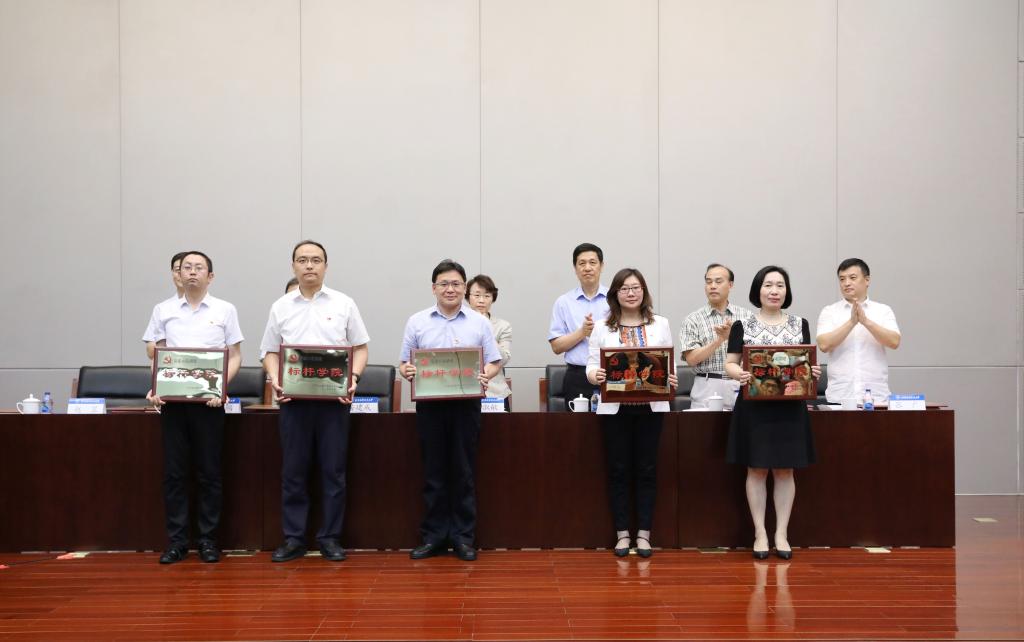 纪念中国共产党成立98周年暨“不忘初心、对标争先”党建示范创建工作会在新主楼第一报告厅隆重召开。在大会上,校党委表彰学校党建工作示范标杆学院培育创建单位5个、样板支部培育创建单位50个、“双带头人”教师党支部书记工作室培育创建单位10个。同时,校党委也对基层党建工作优秀案例进行了表彰。