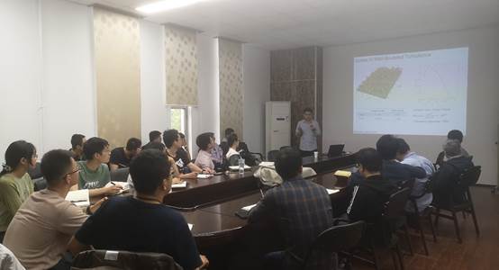 崔光耀博士的报告从线性和非线性两个角度出发,对壁湍流中不同尺度间的相互作用进行分析。在线性分析方面,传统研究多通过特定的滤波和包络处理将所测量的信号分解为大/小尺度结构,其相互作用通常被理解为幅值调制或者相位差异。此方法依赖于大量的实验或者数值模拟数据,而崔光耀博士采用基于传递函数框架的预解式算子方法对该大/小尺度之间的相位差异进行低阶模拟,发现单个预解式模态不足以捕捉壁湍流中不同高度的大小尺度间的相位差异,但通过多个预解式模态加权叠加所得的复合模态可以成功模拟该相位差异。在非线性分析方面,崔光耀博士展示了如何利用双谱和双相干的方法来研究壁湍流中不同尺度之间的非线性三元相互作用。区别于传统的线性化处理,这种方法并不需要人为地将信号分解为大尺度和小尺度,在分析不同尺度间相互作用方面表现出较大潜力。与会师生针对报告内容与崔光耀博士进行了热烈讨论,并对未来潜在的合作方向进行了深入探讨。