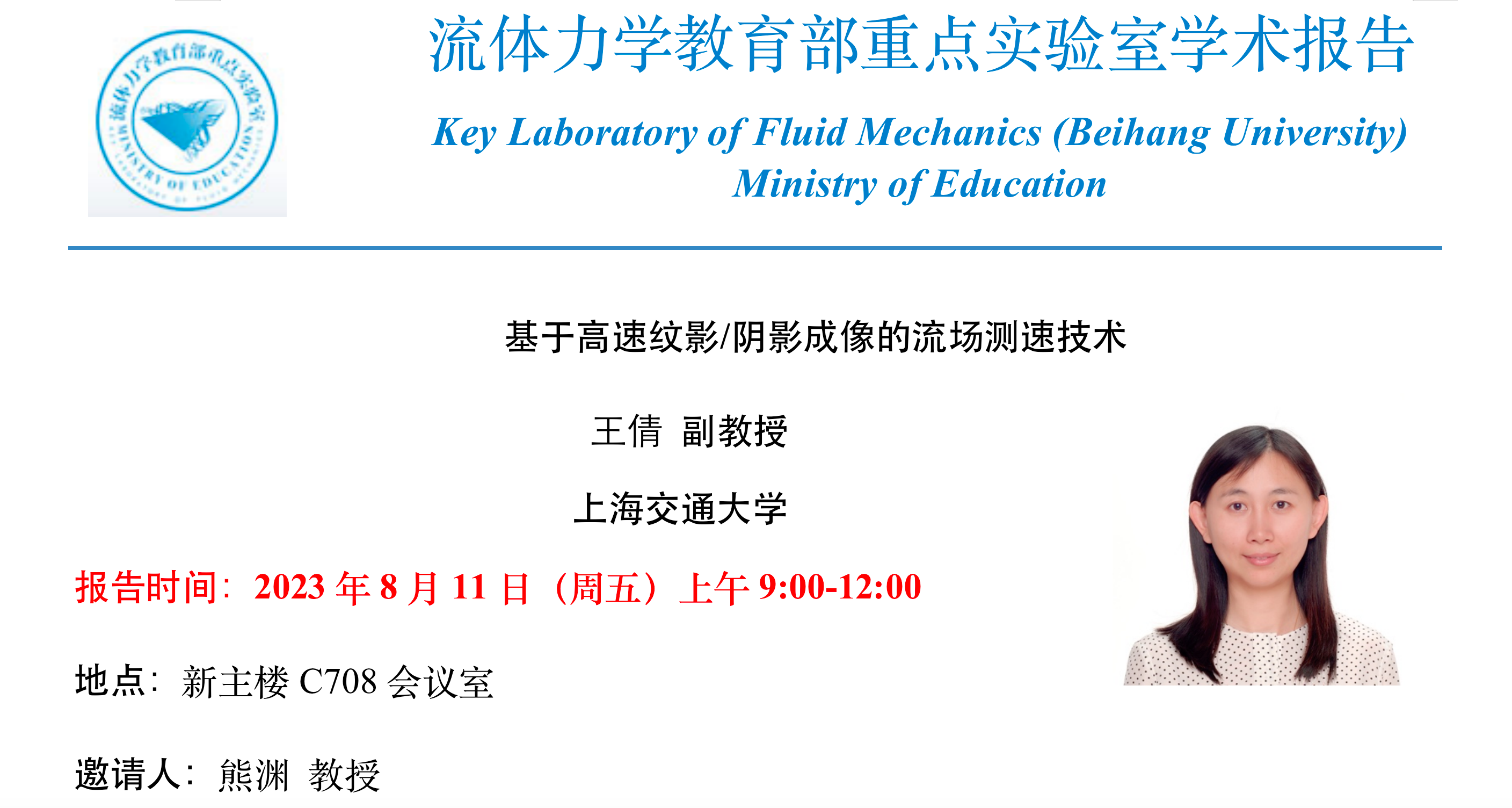 2023年8月11日,受熊渊教授邀请,上海交通大学王倩副教授到我院流体力学教育部重点实验室做学术交流报告,报告题目为“基于高速纹影/阴影成像的流场测速技术”。报告由熊渊教授主持,国产做爱视频