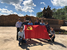 25日上午,支部成员来到张北城南的苏蒙烈士陵园瞻仰晋谒。陵园由纪念塔、纪念碑和烈士墓三部分组成,是为纪念抗日战争中在此牺牲的苏蒙联军将士而建。园内苍松翠柏,绿树成荫,支部成员认真聆听讲解,询问当年战斗的概况和过程。