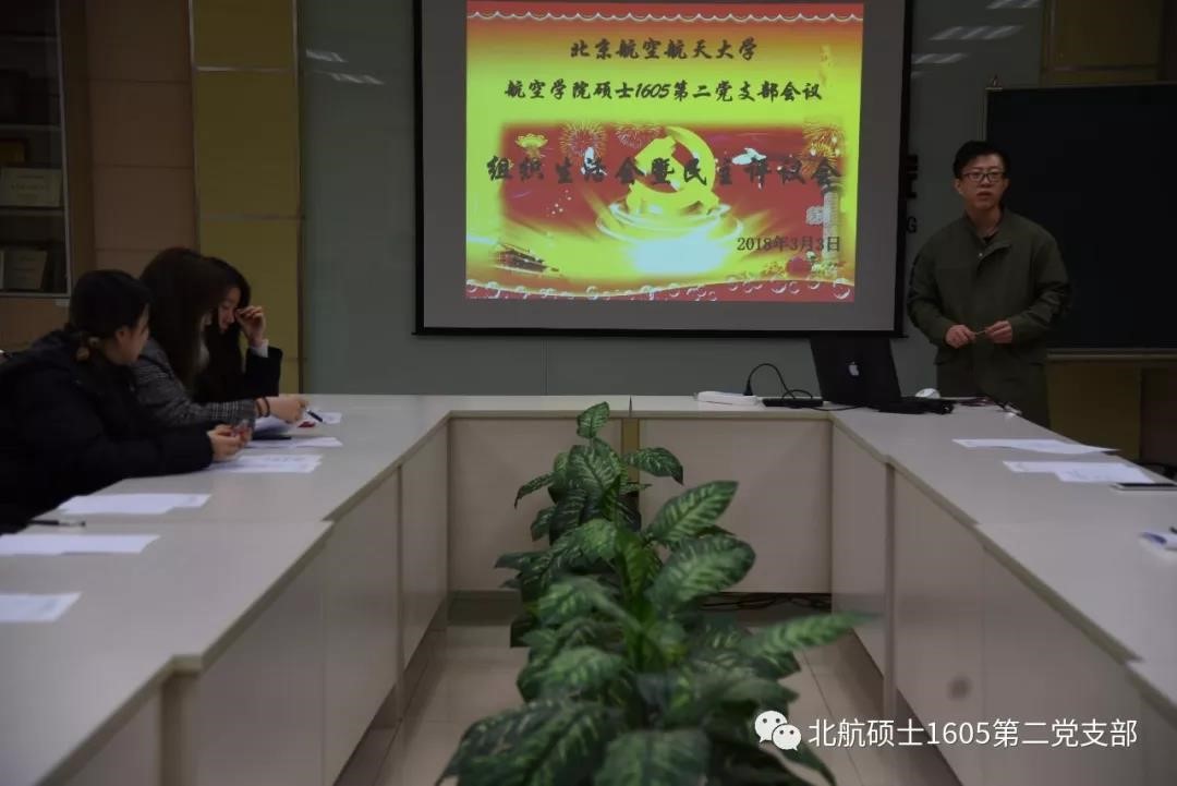 2018年3月3日晚19时,北航国产做爱视频 硕士16052党支部会议在新主楼C708举行党支部组织生活会暨民主评议会。会议主要内容是对上学期工作的了解与对本学期工作的展望、民主评议党员、批评与自我批评。本次会议由党支部书记刘明阳同志主持,应到22人,实到20人,2人请假。