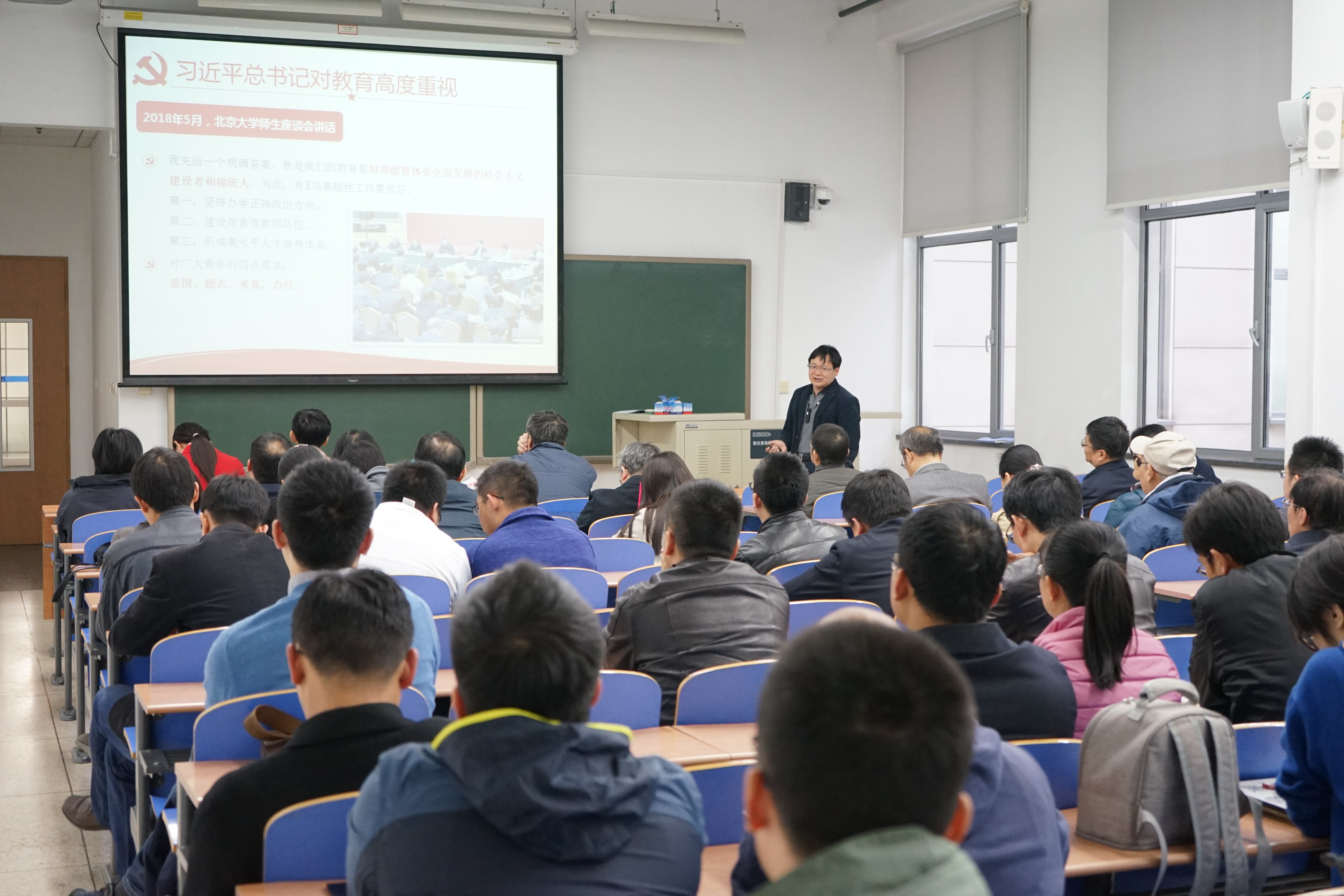 党委在新主楼B102召开教师党员党课,专题学习全国教育大会精神。会议由学院党委书记林贵平同志主持,全体教师党员参加会议。