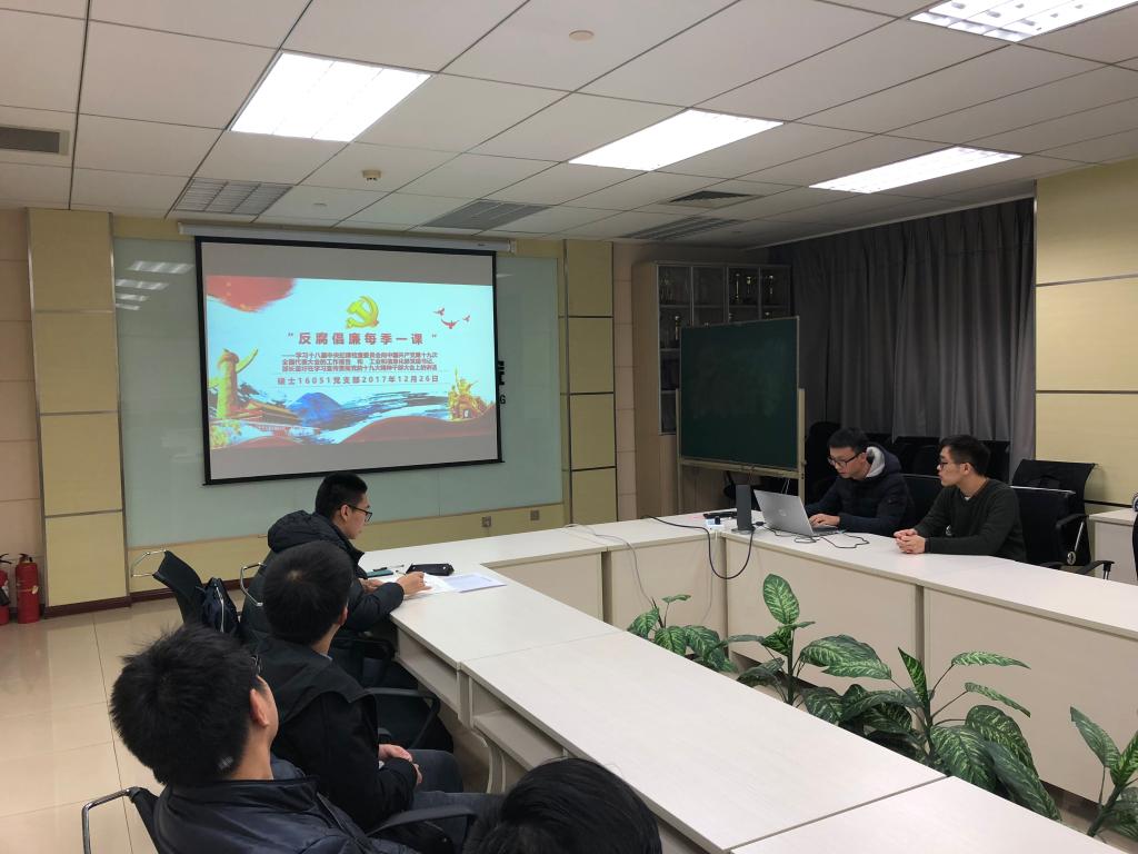 2017年12月26日晚18点半,航空科学与工程硕士16051党支部在新主楼C708召开了12月主题党日活动支部会议,本次会议的主题是关注时事热点和解读中央“反腐倡廉”的相关文件。