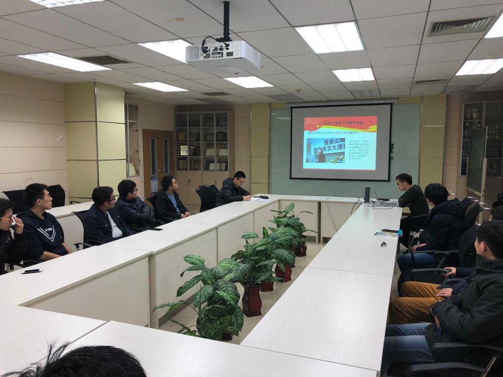 会议在雄壮的《国际歌》中拉开帷幕,随后,由支部书记张威同志带领大家回顾了最近的热点事件——南京大屠杀80周年纪念活动。张威同志简要介绍了南京大屠杀事件以及国家公祭日的由来,并介绍了今年世界各地的一些纪念活动。最后,张威同志还解读了全国政协主席俞正声同志在国家公祭日的讲话,教导大家勿忘历史,珍爱和平。