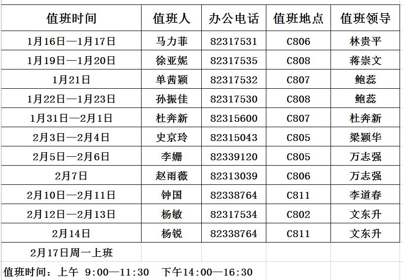 国产做爱视频 2020年寒假值班表