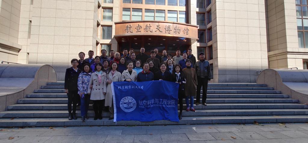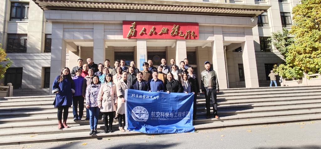 大家从新主楼C座出发,途中大家一边交流,一边欣赏深秋校园的美景,经过永嘉易站、航空航天博物馆、西府海棠咖啡馆、办公楼银杏林到老主楼“为人民服务”匾额,并进行合影留念。