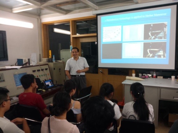 王延奎教授热情地为华科师生们讲解了航空航天的发展史,并结合他的研究成果重点讲解了机头非对称流动问题,激发了同学们钻研的热情。稍后,由风洞实验室研究生、支部积极分子魏新同学向师生演示了导弹模型的风洞试验。参观内容丰富、具有成效。