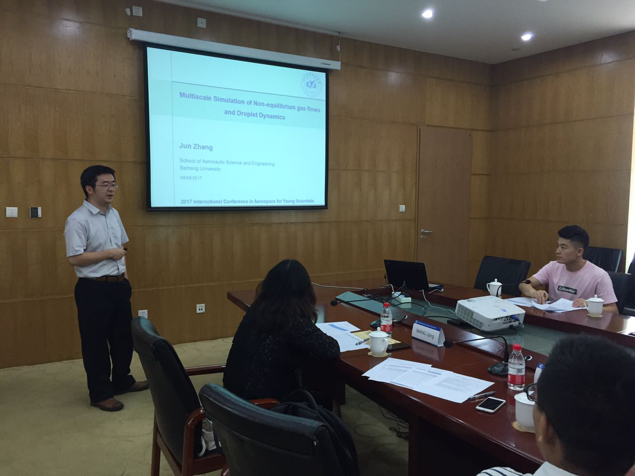 张俊副教授的报告题目是《Multiscale Simulation of Non-equilibrium gas flows and Droplet Dynamics》。