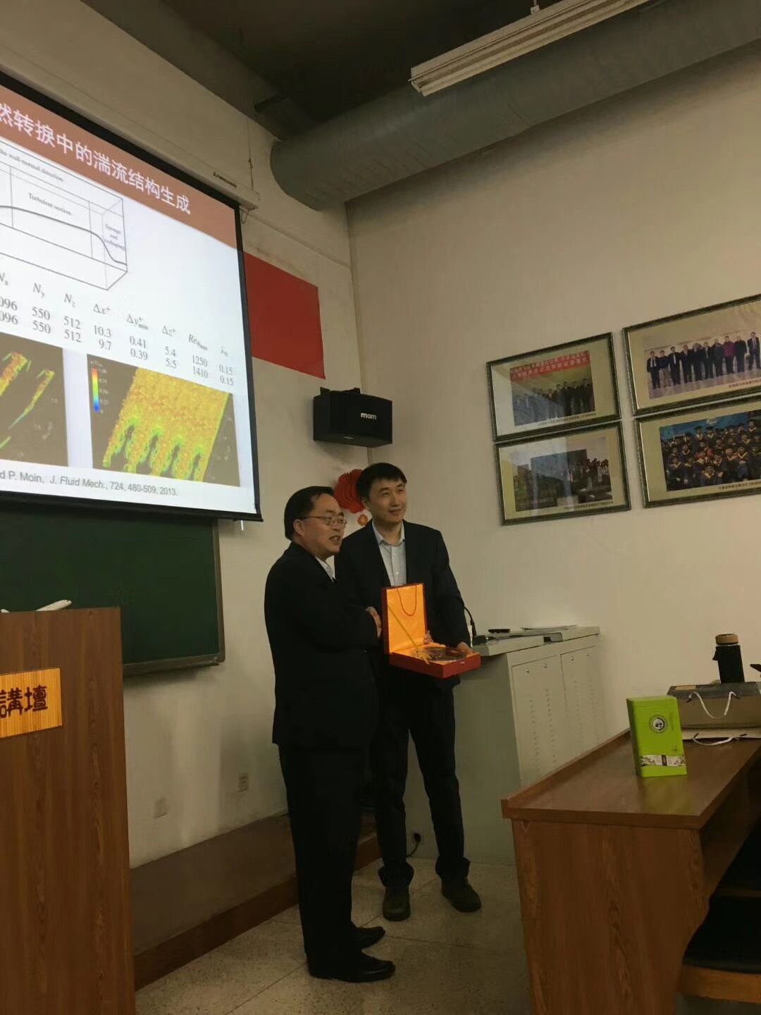 杨越研究员于2011年获加州理工学院博士学位,并获普林斯顿大学燃烧能源中心博士后奖助。2013年起任北京大学工学院力学与工程科学系特聘研究员,国家级青年人才,获求是杰出青年奖。主要从事的研究方向为湍流、燃烧与计算流体力学。本次讲座中,杨越研究员围绕在转捩与湍流运动中如何有效的对拟序结构识别这一问题展开,通过拉格朗日演化观点提出了对拟序结构识别的涡面场方法。阐述了拉格朗日观点下湍流结构的生成机理,并形象的用浴巾卷绕反映“发卡涡”的演化过程。在讲座的最后,杨越研究员还利用标量图像中的小尺度结构壁面倾角信息对超声速边界层转捩中的摩擦阻力曲线进行了估测,并和在场的老师和同学们展开了热烈的交流与讨论。