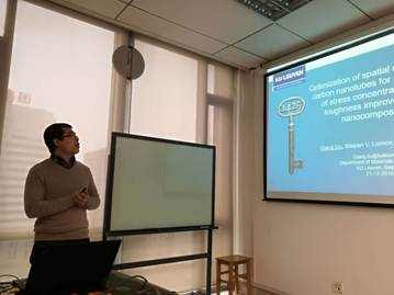 12月21日,受杨振宇副教授的邀请,比利时鲁汶大学的刘强博士到我院固体力学所做学术交流报告。报告的题目为“通过优化纳米复合材料中碳纳米管的空间分布来抑制应力集中并提高材料韧性”(Optimization of spatial distribution ofcarbon nanotubes for suppression of stress concentrations and toughnessimprovement in nanocomposites)。报告由杨振宇副教授主持,国产做爱视频 师生二十余人听取了学术报告。