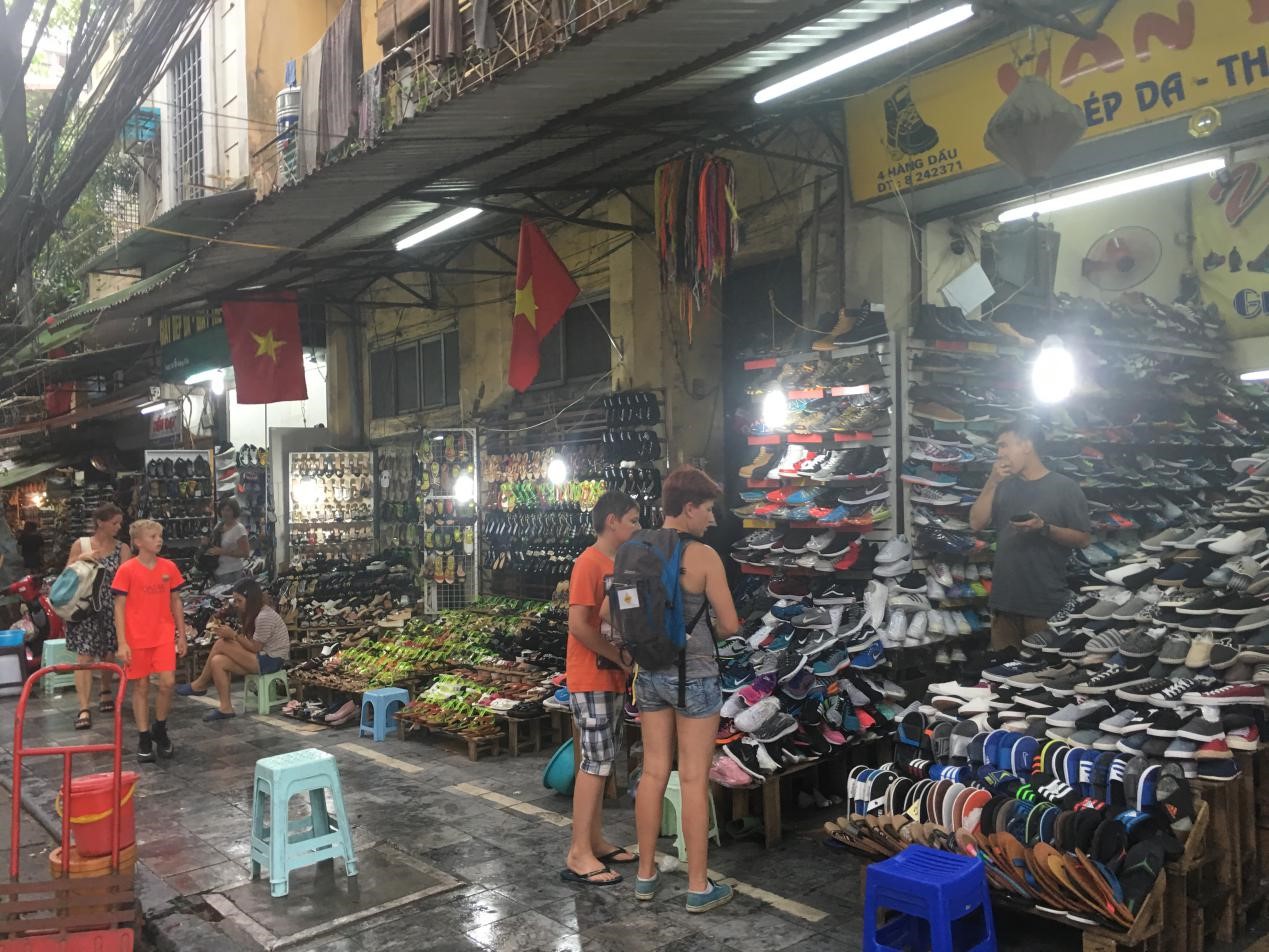 越南时间9:00,游学团来到了河内最著名也是历史最悠久的手工业市场——“三十六行街”进行市场调研。三十六行街曾经是河内主要的商业街,位于还剑湖的北部。三十六行街,已有上千年的历史,至今仍是越南最生动最不寻常的地方之一。多年来,凡是到此的国内外游客都把它视为千年文献首都河内的特殊文化遗产。