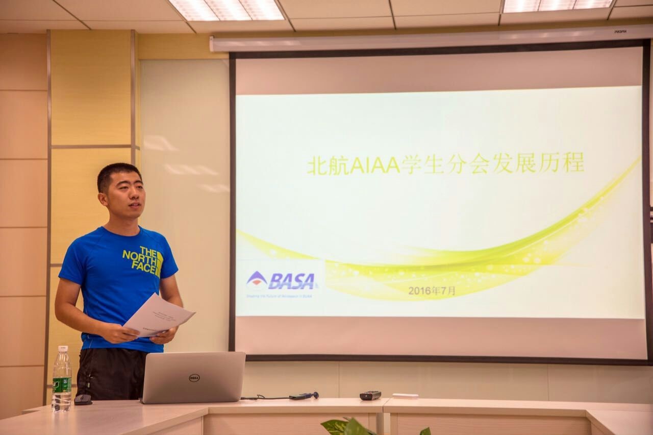 接下来,BASA副主席姜宇以PPT的形式介绍了BASA自成立以来所进行的各项活动,主要包括自身建设、学术讲堂、大咖聊、AIAA经验交流会等,赢博士对分会的建设和壮大表示赞赏和欣慰。