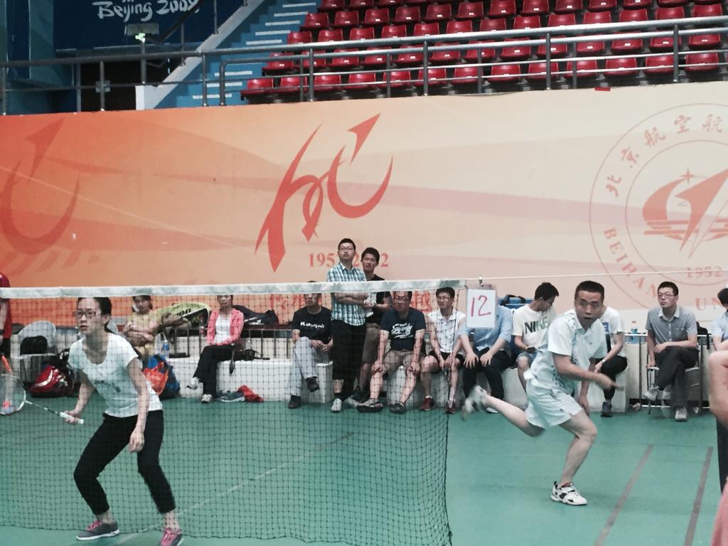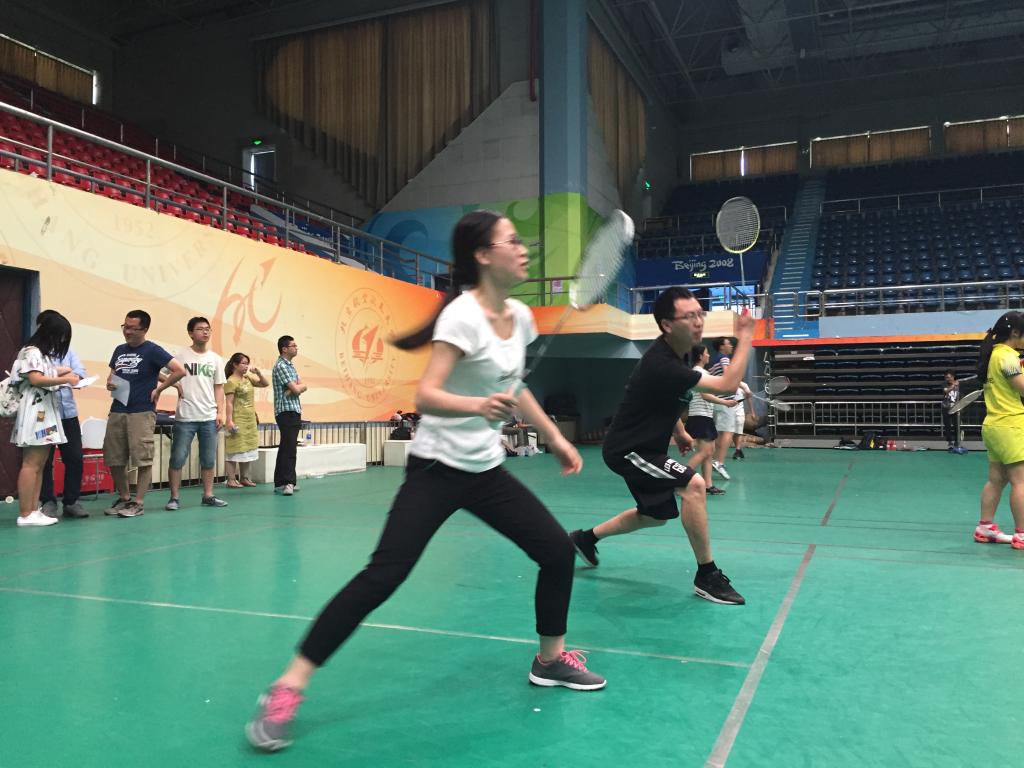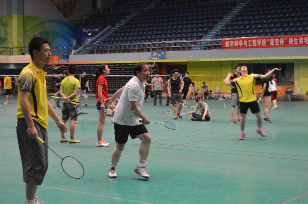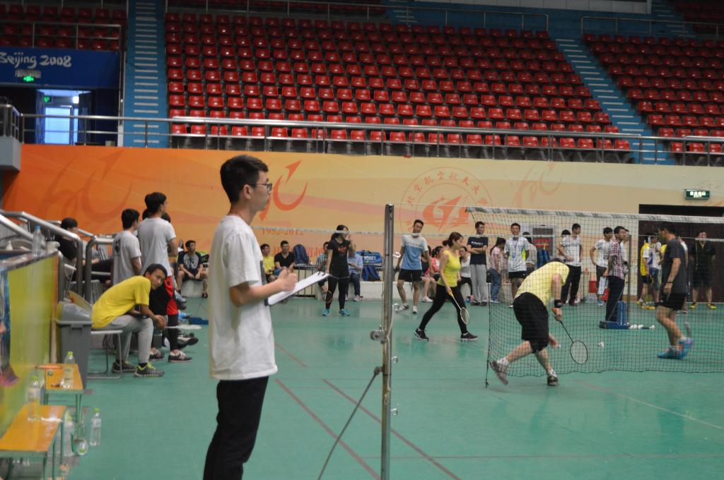 此次“星空杯”师生羽毛球赛的比赛地点为北航羽毛球馆主馆。早上7点之后,很多参赛选手和助威的师生就已经来到比赛场地进行热身备战,场内气氛活跃。