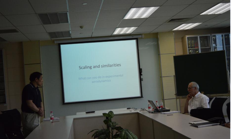 下午14:30,讲座如期而至。在王老师的介绍之后,Georg Eitelberg教授开始了他的讲座。Georg Eitelberg教授首先以一个简单的例子引入了本次讲座的主题,接着则从实验流体力学的相似准则、风洞分类和实验模拟等方面向同学们讲解着。讲座结束之时,同学们报以了热烈的掌声。在讲座过后,同学们也积极地和Georg Eitelberg教授就学术相关与文化相关等问题交流着。会后,同学们再次鼓掌以示对Georg Eitelberg教授的感谢。