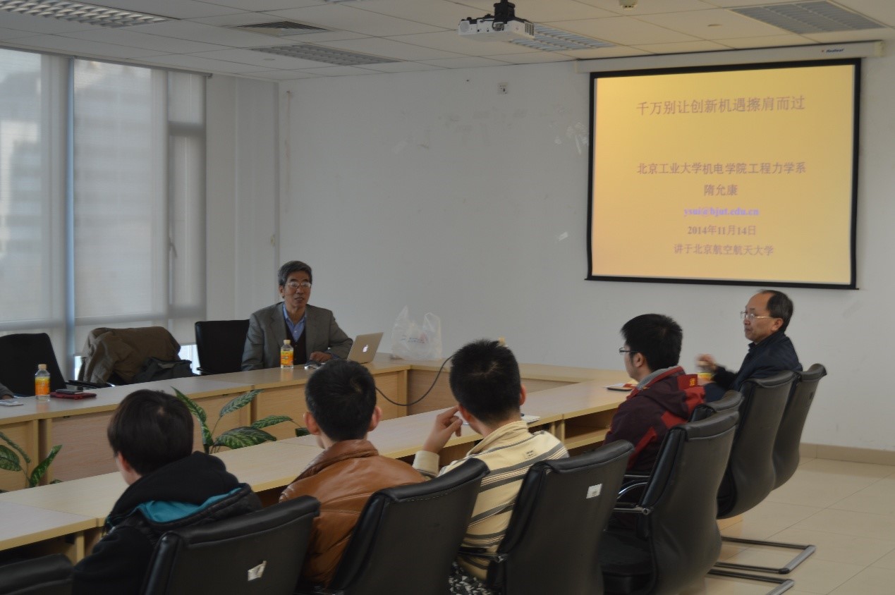 在新主楼C706举办了一场别开生面的固体力学前沿讲座。此次讲座我们邀请到了北京市教学名师,北京工业大学教授,博士生导师,隋允康教授与我们交流了科学研究中的创新问题。