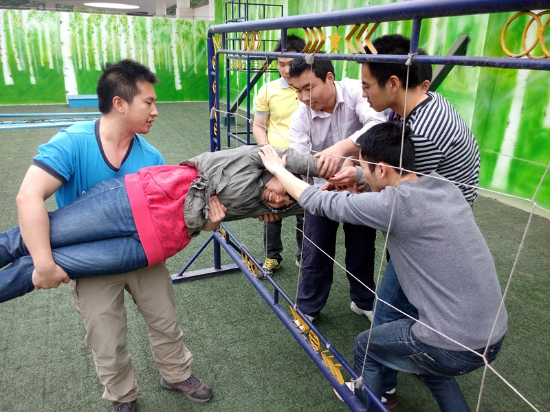5.手指抬人5个队员将另一个队员用两根手指不能用手掌和手臂等抬离地面一定高度。(不能借助其他任何工具)