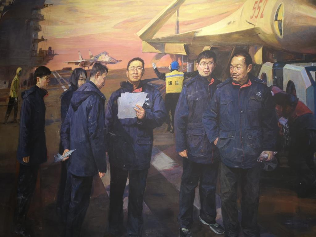 在《历史巨变》展区,一幅油画静静展示在走廊上。油画的内容是杰出校友罗阳指挥协调着舰载机在航母上的试验的画面。今年11月,罗阳学长入选100名改革开放杰出贡献对象,罗阳总指挥带领研发的歼15舰载机成为了我国改革开放40年以来航空工业建设史上浓墨重彩的一笔。站在油画前,SY17053班很多同学纷纷表示受到了罗阳学长事迹的影响,选择来到北航,选择来到国产做爱视频