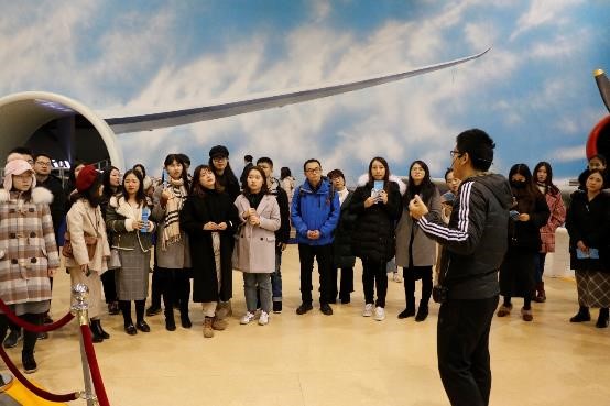 首先,在我院硕士18054党支部书记张山同志的讲解下,同志们一同参观了北航航空馆。张山同志的讲解既专业又生动,带领大家依次参观了长空逐梦、银鹰巡空、空天走廊、神舟问天四个展区。同志们听得饶有兴趣,还不时提问,现场气氛十分活跃。尤其是政法大学的同志很多都是第一次来北航,第一次见识到了这么多新鲜的飞行器,张山同志的讲解让他们对北航以及航空馆的历史有了初步的了解。同志们纷纷感慨,希望祖国的空天事业能够百尺竿头更进一步。