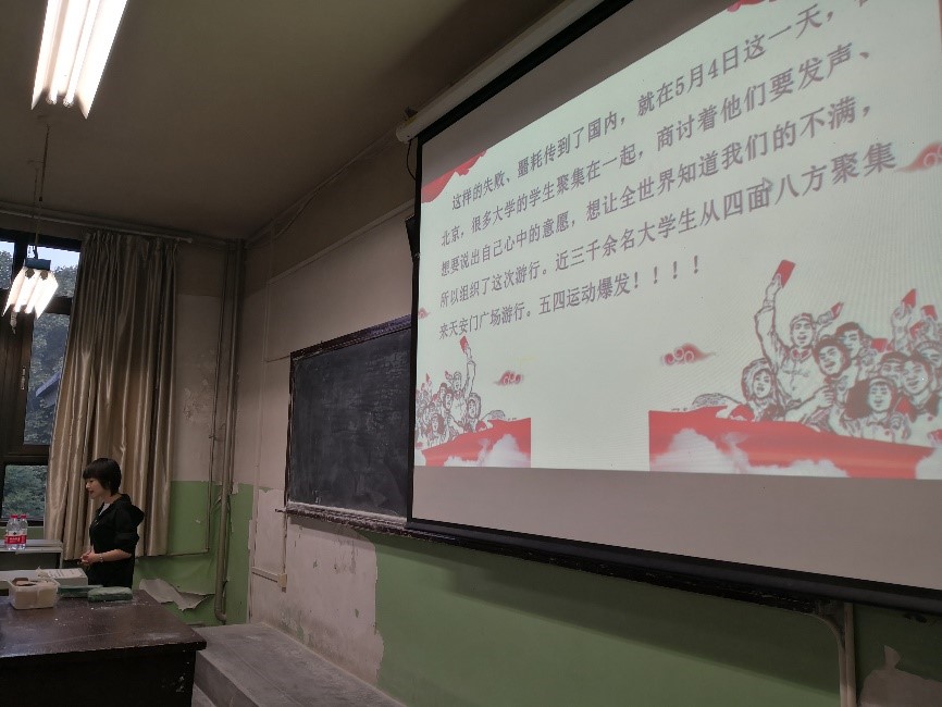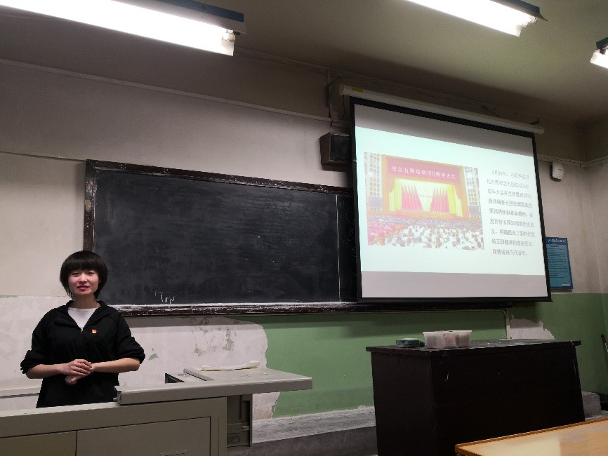 李佳同志首先讲述了五四运动的历史背景,用五个历史事件勾勒出当时中国国势衰微、内外交困的历史图景,通过影视作品重现五四运动的主要过程,并详细讲述了历史细节,完整还原了五四运动始末,介绍了五四运动对当时的中国产生的现实影响,并通过李大钊、吴晗的文字,指出纪念五四运动的意义。