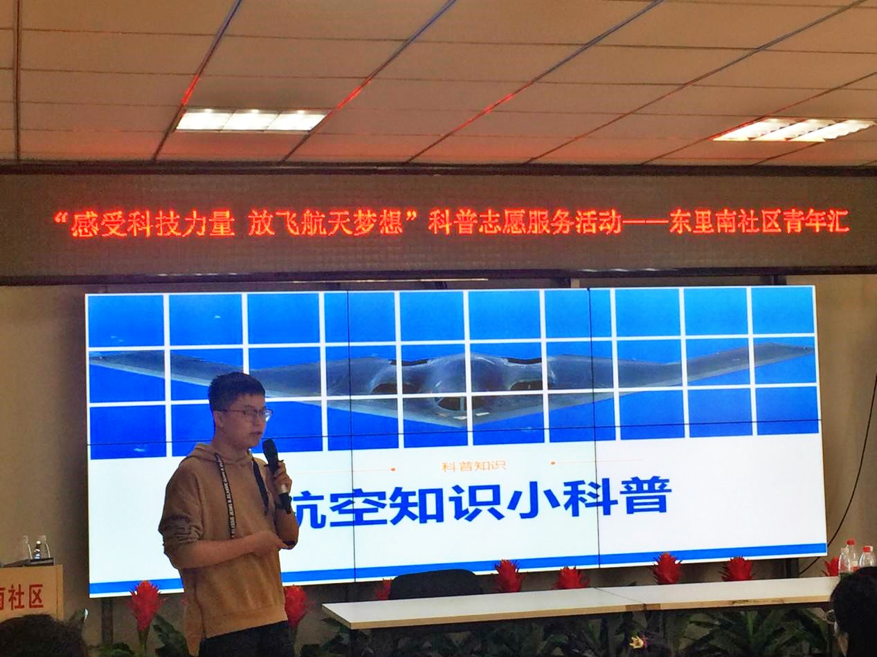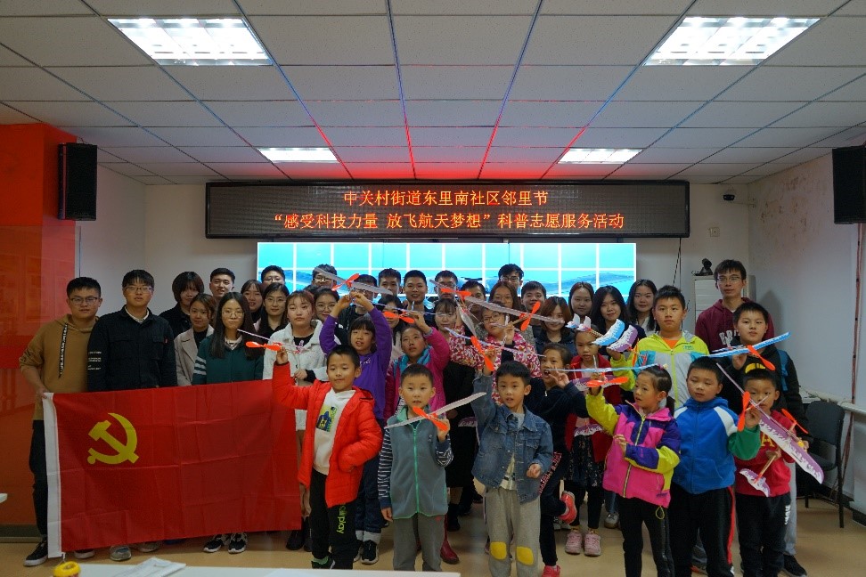 硕士生18053学生党支部携手人文与社会科学高等研究院的研究生们,赴北京市中关村东里南社区服务站开展了“感受科技力量,放飞航空梦想”科普志愿活动。本次活动共有30名研究生党员与13名6至12岁的小朋友参加,小朋友们的家长陪同参加。志愿活动的主要内容是给孩子们进行航空知识小科普,并与他们共同完成一个航模的拼装与试飞。