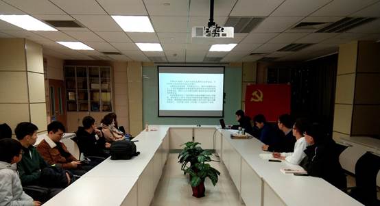 硕士生19054学生党支部于新主楼C708会议室召开了支部会议,开展微党课学习活动,会议由王培生同志主持。奏唱国际歌之后,徐聪毅同志为支部党员讲述以“学习党的十九届四中全会精神”为主题的党课。